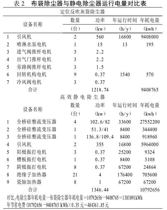 電除塵器由于電除塵器不具備離線檢修功能,一旦發生故障,只能停爐檢修,否則只能帶病運行。檢修時員工需進入除塵器內部,工作環境惡劣。除塵器內部裝置損壞程度及位置_依靠人力完成檢查工作,檢修勞動強度大。布袋除塵器和電除塵器耗電量對比。