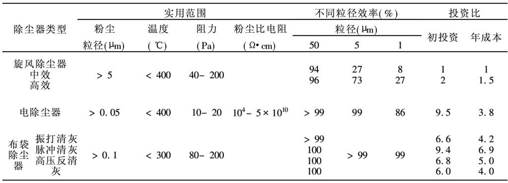 布袋除塵器的選用,_考慮到粉塵的分散度,粉塵比電阻、含塵氣體溫度、煙氣量、除塵效率、投資費用等因素的影響。工業中常采用的除塵器是旋風除塵器、布袋除塵器、電除塵器。其性能如下表所示: