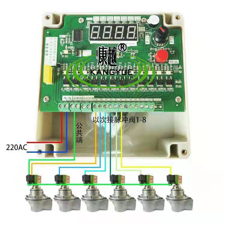 脈沖控制儀輸出一個電信號持續時間稱為脈沖寬度。控制儀輸出連續兩個電信號之間的間隔時間稱為脈沖間隔。后一個脈沖到di一個脈沖之間的停止時間稱為循環間隔。控制儀可以根據清灰要求,調整脈沖寬度和脈沖間隔,對除塵器進行循序巡回定時清灰。控制儀由高性能微處理器(CPU),控制集成電路,LED數碼顯示,光電隔離環節,大功率晶體管驅動等組成,工作穩定可靠,KYM-ZC系列