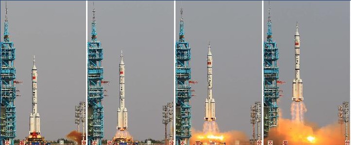 6月16日,神舟九號(hào)飛船在酒泉衛(wèi)星發(fā)射中心發(fā)射成功,神舟九號(hào)奔向天宮,載人航天再啟新程。北京時(shí)間6月16日18時(shí)56分,執(zhí)行我國(guó)_載人交會(huì)對(duì)接任務(wù)的神舟九號(hào)載人飛船,在酒泉衛(wèi)星發(fā)射中心發(fā)射升空后準(zhǔn)確進(jìn)入預(yù)定軌道,順利將3名航天員送上太空。