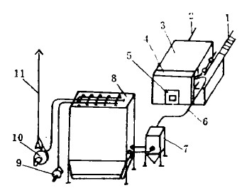 5-電護;6-風管;7--重力除塵器;8-布級除塵 器;9一反吹風機;10一引風機;11-排氣筒