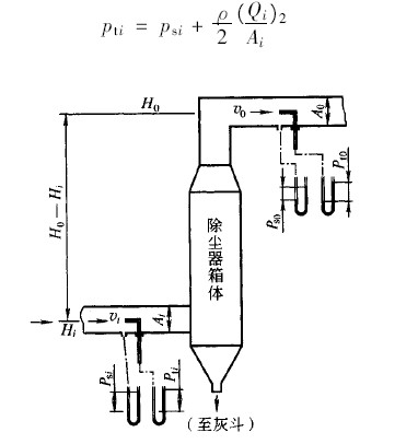 上式中,右邊_項是除塵器的出、入口靜壓差;_項是出、入口測定截面積有差別時的動壓校正。如果假定出、入口通風道的截面積相等,而且沒有高低差,那么,_項、第三項_不存在以上所說的壓力損失也包括除塵器前后通風管的壓力損失,除塵器自身的壓力損失要扣除通風管的壓力損失.